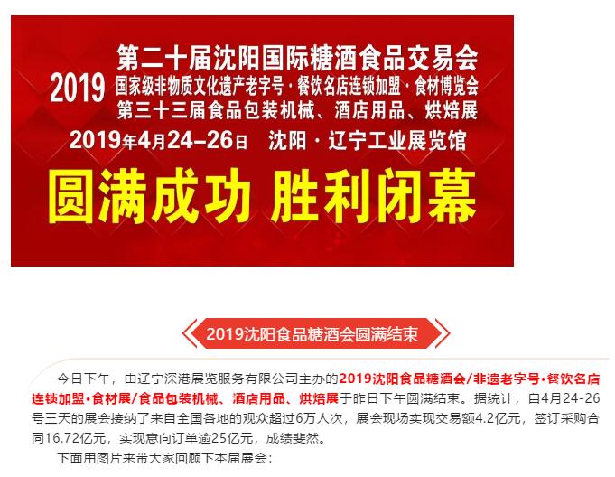 2019沈陽(yáng)糖酒會(huì)/非遺老字號(hào)·餐飲名店連鎖加盟·食材展/食品包裝機(jī)械、酒店用品、烘焙展勝利閉幕!
