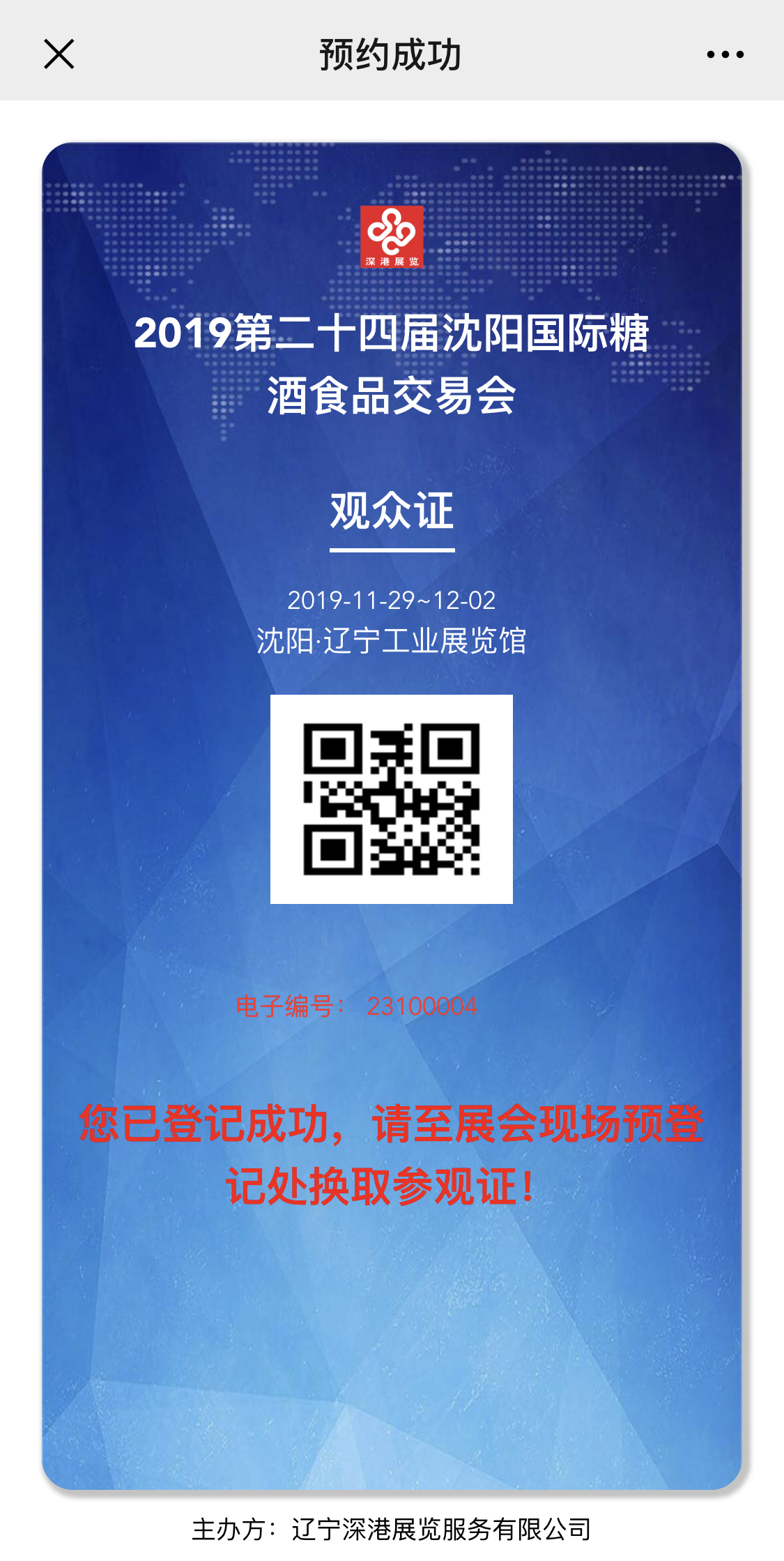 第四步:注冊(cè)成功后,即可收到預(yù)登記二維碼。