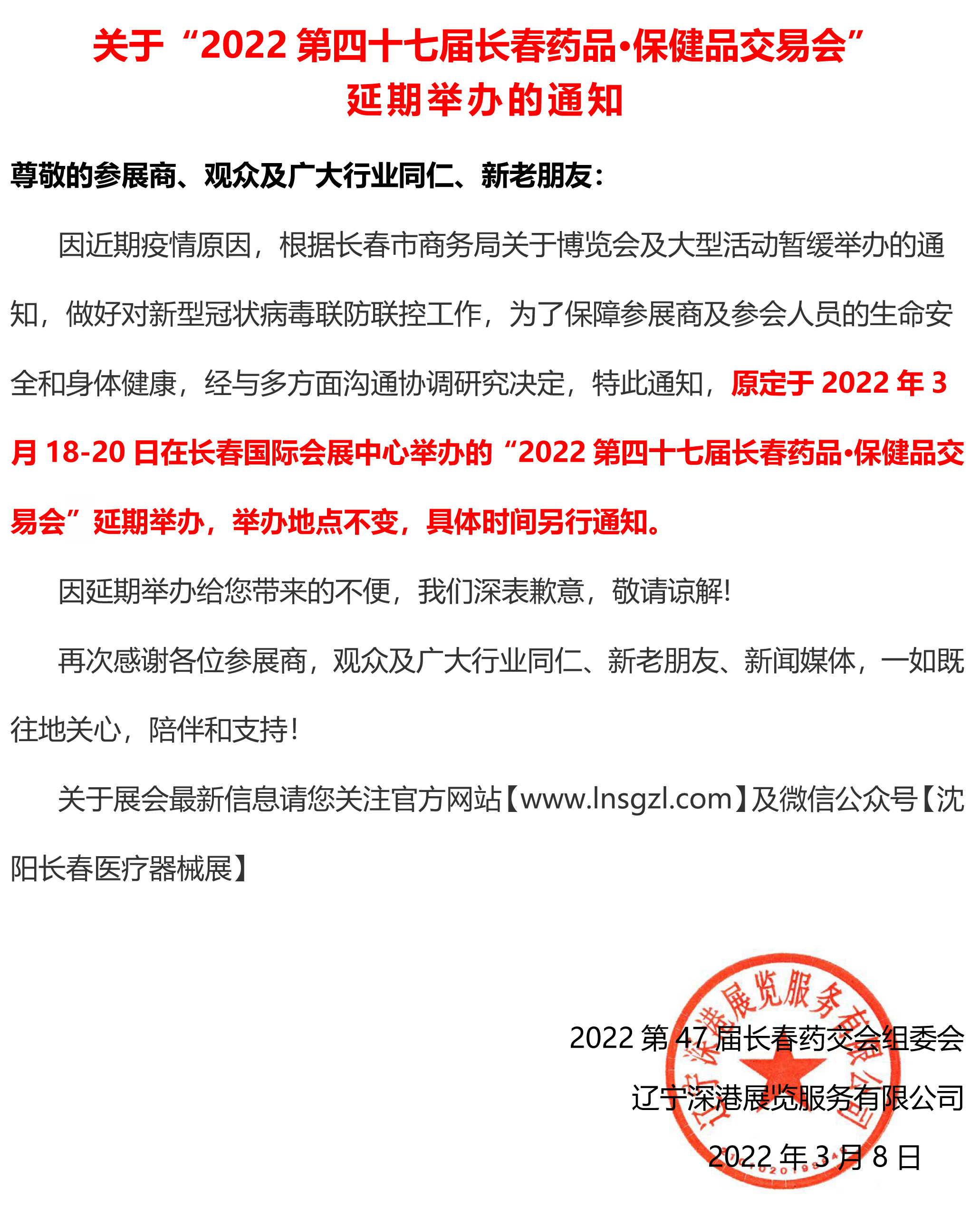 延期通知|2022第四十七屆長(zhǎng)春藥品·保健品交易會(huì)