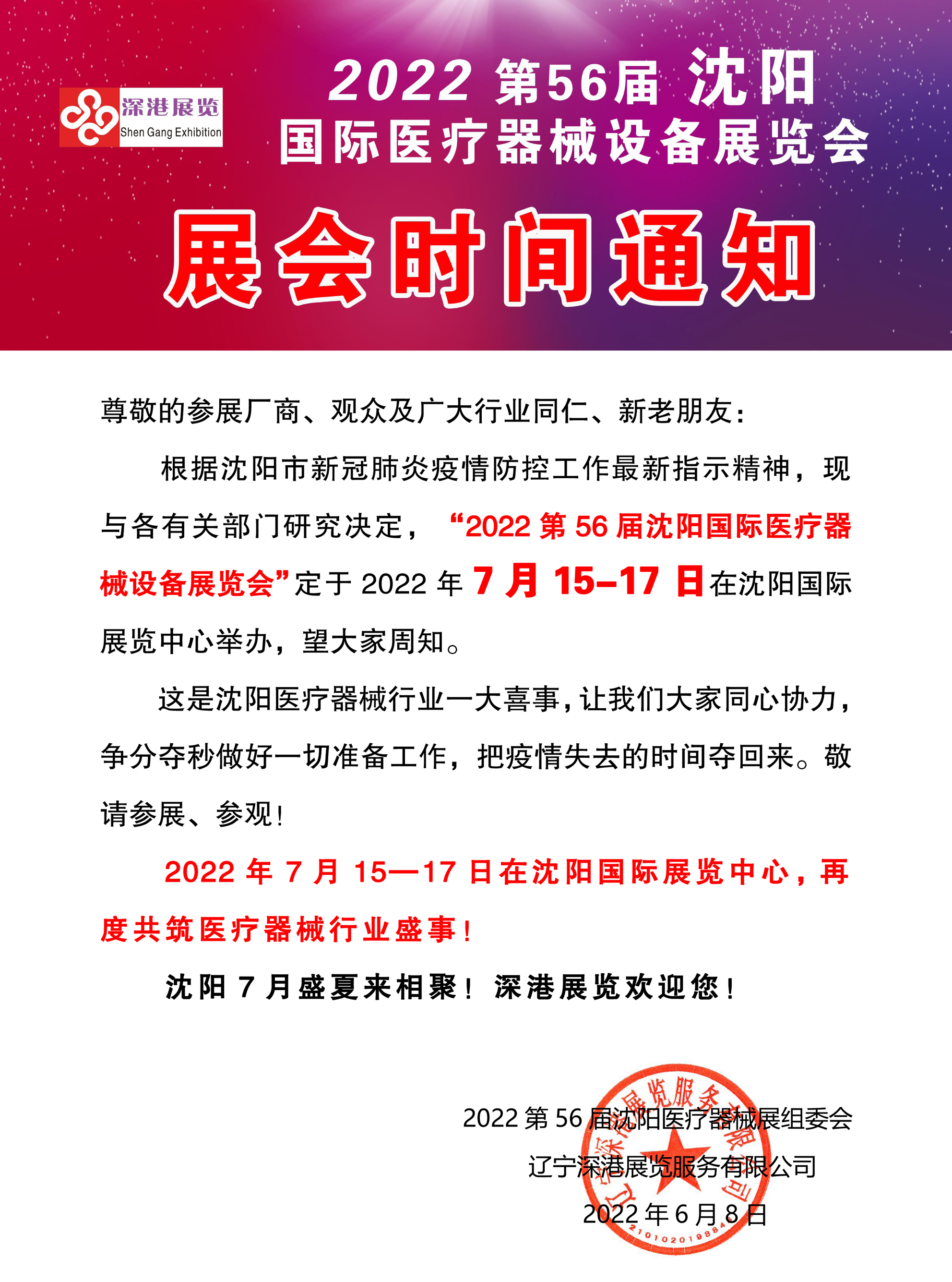 | 2022第56屆沈陽國際醫(yī)療器械設備展覽會7月15-17日盛大召開?。?! | |
