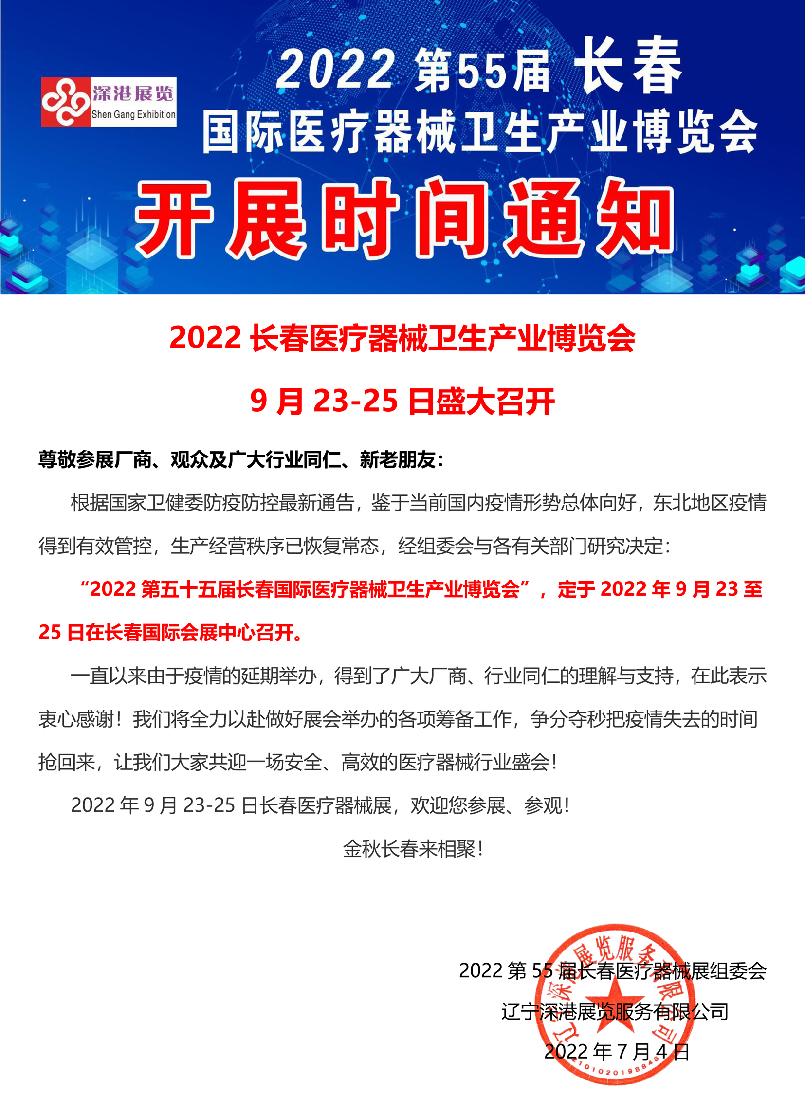 | 2022第55屆長春國際醫(yī)療衛(wèi)生產(chǎn)業(yè)博覽會9月23-25日盛大召開 | |